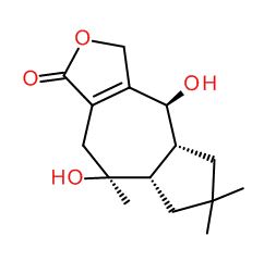 IUPAC name: (5,5,8,9)-5,9-dihydroxy-5,7,7-trimethyl-4,5,6,8,8,9-hexahydro-1-azuleno[5,6-c]furan-3-one